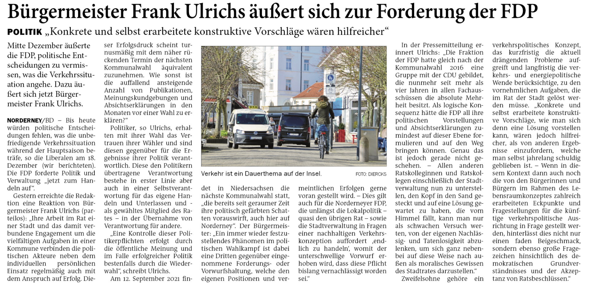 Statement des Bürgermeisters Frank Ulrichs, Ostfriesischer Kurier, 7.1.2021: